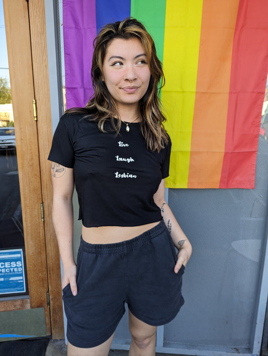 Live Laugh Lesbian Flowy Crop Tee