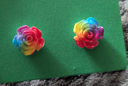 Rainbow Rose Stud Earrings